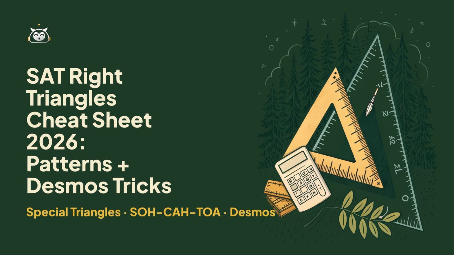 The good news: once you lock in the Pythagorean theorem, the three special triangle ratios, and a handful of trig rules, you'll recognize every right-triangle question on sight — and Desmos can handle the heavy arithmetic in seconds. This guide breaks down the 7 core techniques you need, with real worked examples drawn straight from the SAT question bank, so you know exactly what to expect on test day.