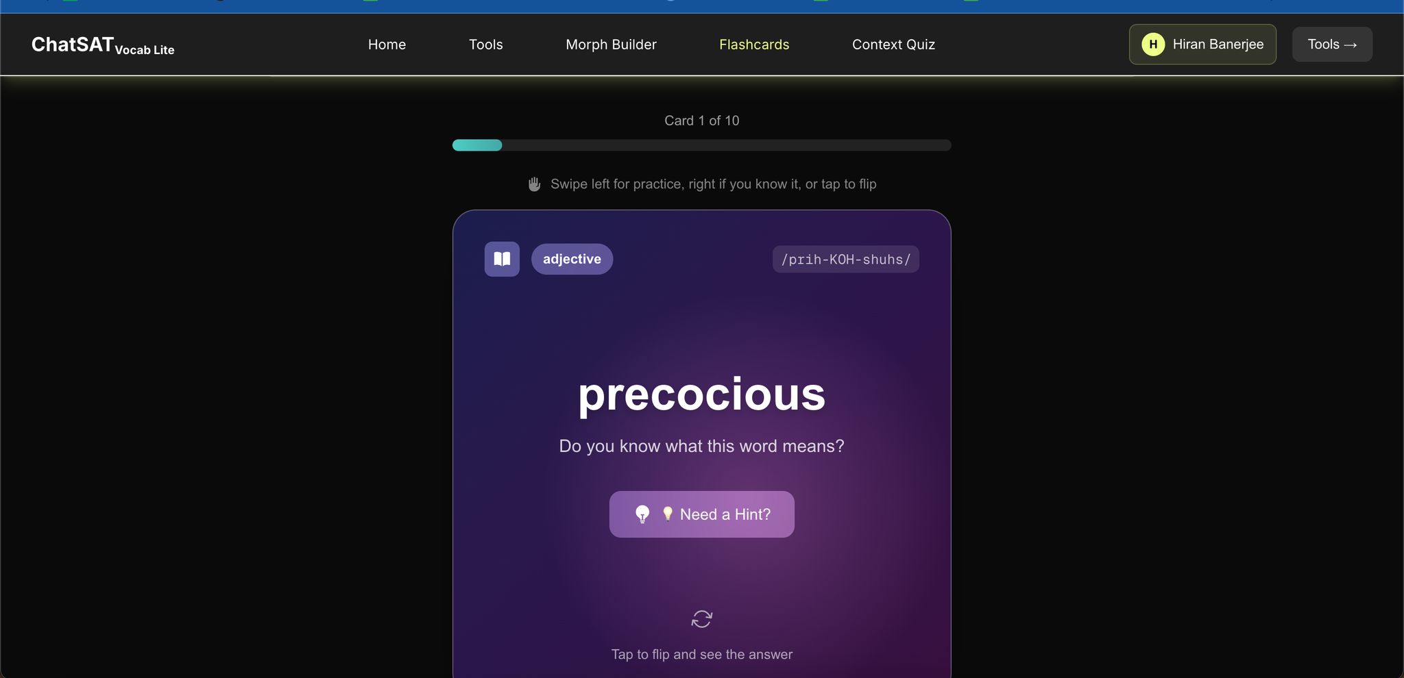 SAT vocabulary prep isn’t just about memorizing lists of words. Platforms like ChatSAT Vocab Lite take a morphology-first approach, teaching students to break words into roots, prefixes, and suffixes. This method makes it easier to recognize common patterns, recall meanings, and tackle unfamiliar vocabulary in both the Reading and Writing sections.
