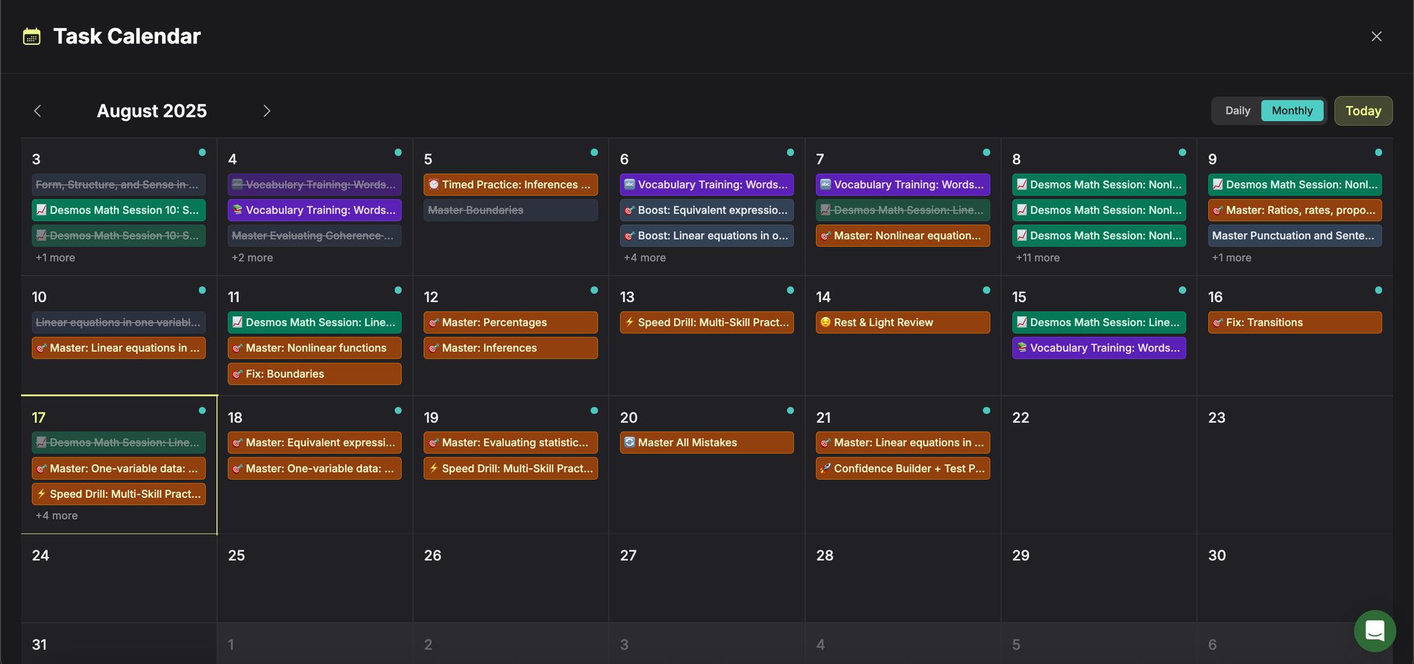 - AI Study Director: This feature creates a dynamic week-by-week calendar tailored to your progress. For example, if quadratic equations are tripping you up in Week 4, it schedules extra algebra practice while postponing less critical topics.