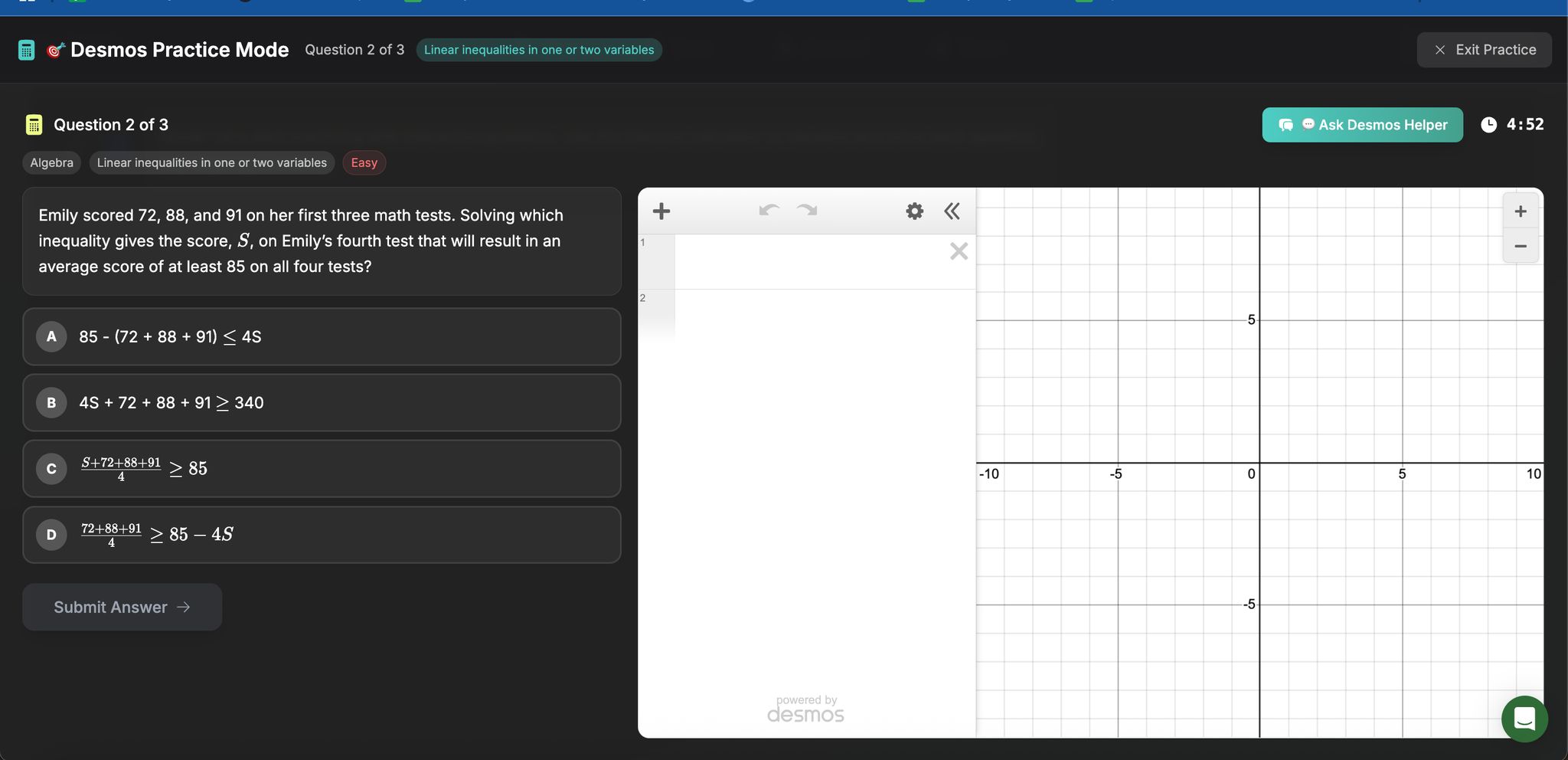 - Inequalities shading is the starting point for Desmos practice. Begin with simple examples like graphing a single inequality (e.g., y > 2x + 3) and testing points to find the correct shaded region. For more complex problems involving systems of inequalities, graph multiple inequalities at once to locate the overlapping (double-shaded) solution area. This visual method mirrors the approach you'll use on test day.