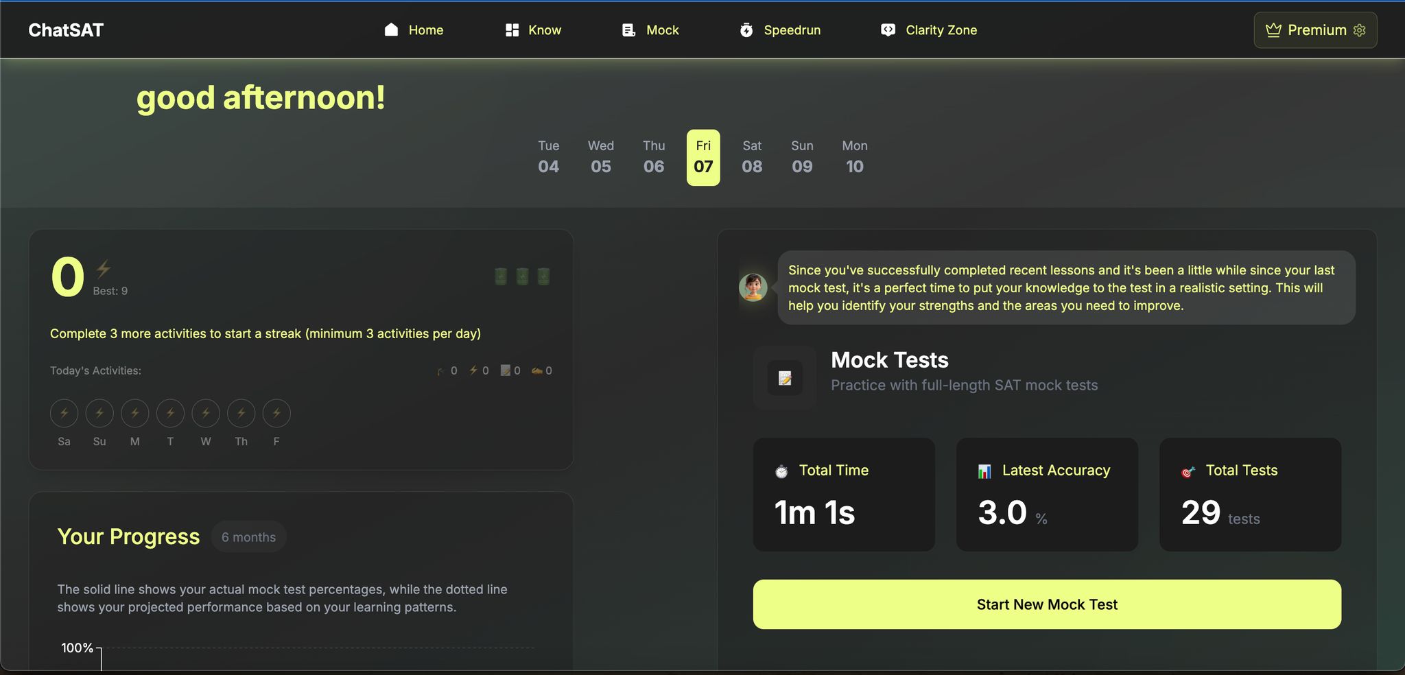 Combining these self-care habits with ChatSAT's structured practice plan will help you perform your best during both practice and the actual exam.