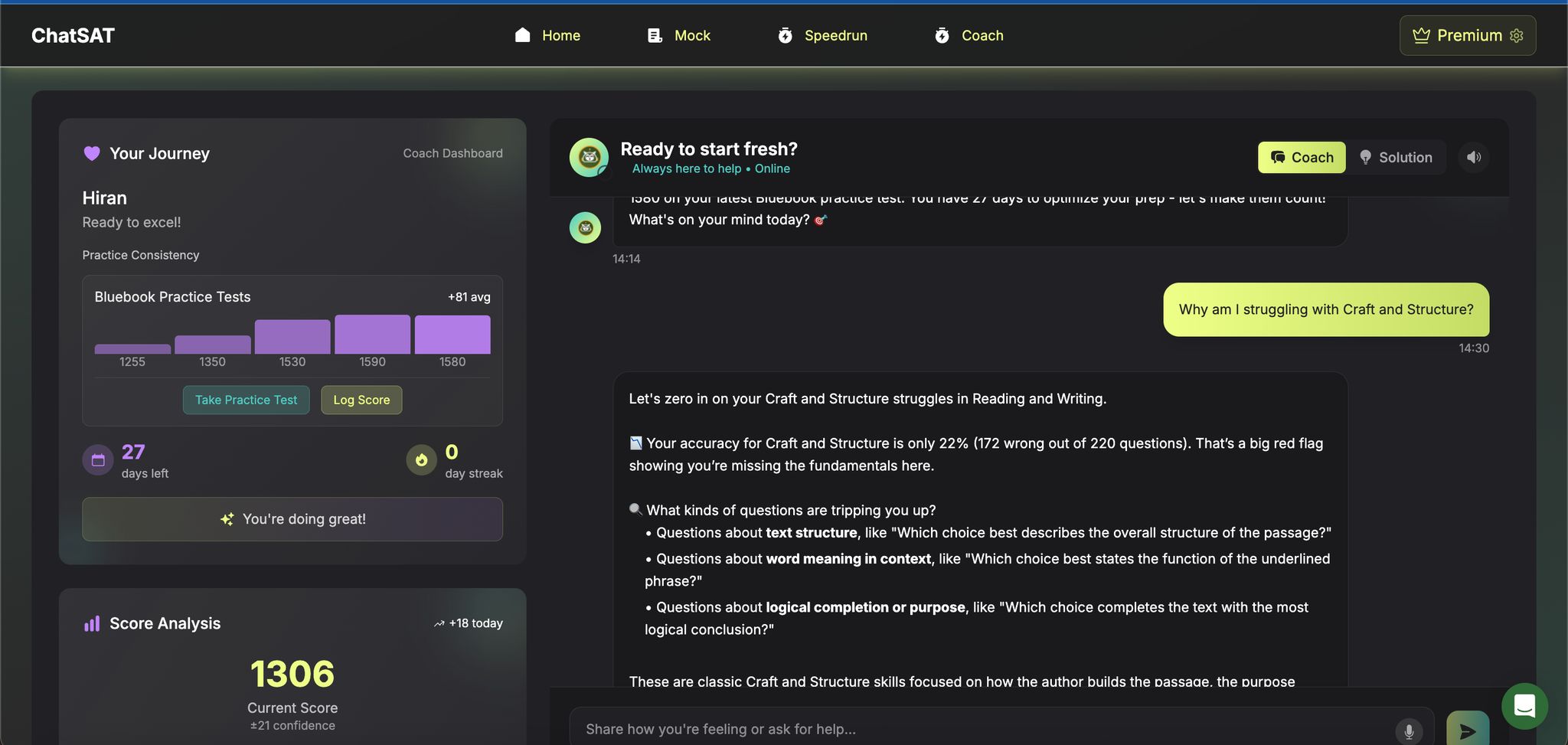 Once you’ve established a solid daily drill routine, adaptive tools can elevate your practice even further. These tools personalize your study sessions based on your strengths and weaknesses, ensuring you focus on what matters most. Platforms like ChatSAT analyze your performance in real-time, adjusting the difficulty and focus of your drills to maximize your progress.