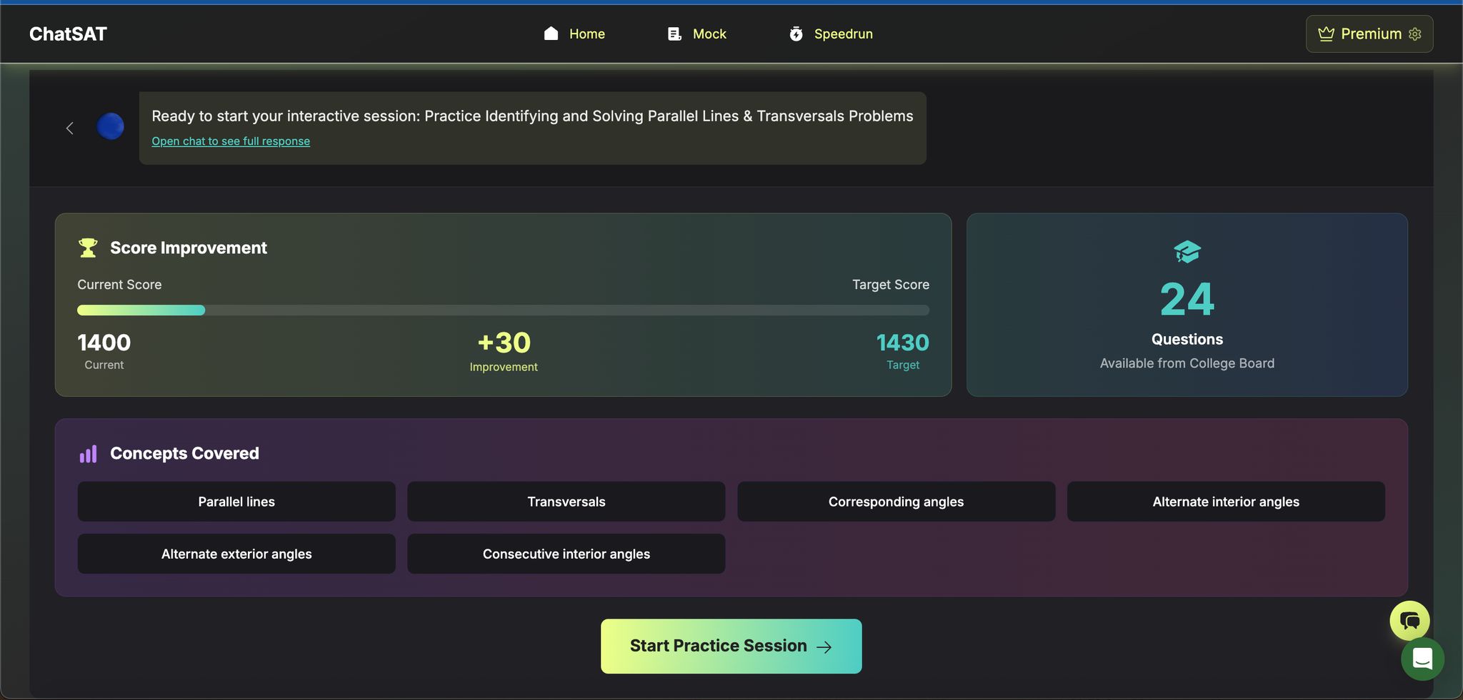 ChatSAT is a powerful tool for sharpening your angle-pattern recognition skills. Its adaptive drills and AI Study Director can help you focus on areas where you need the most improvement.