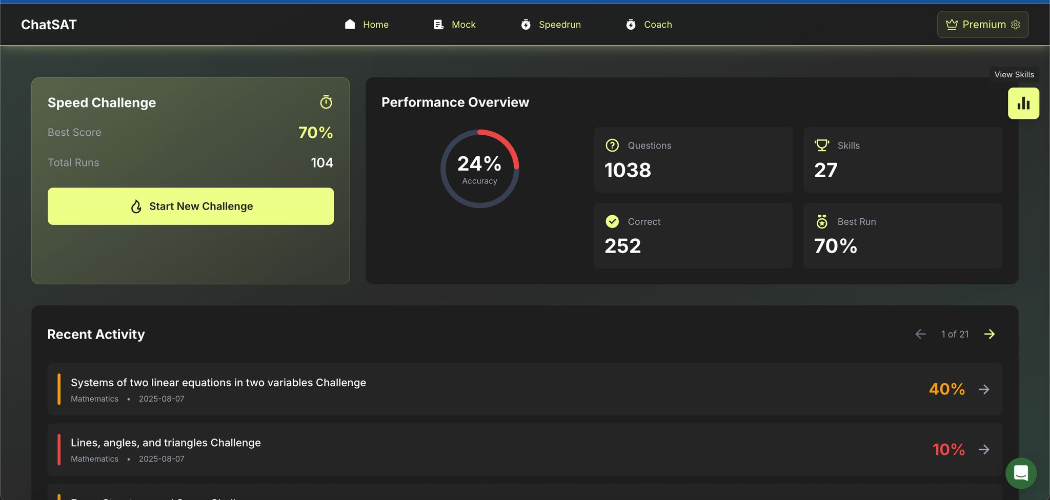 By zeroing in on the topics that offer the greatest potential for score improvement, ChatSAT ensures your study time is as efficient as possible.