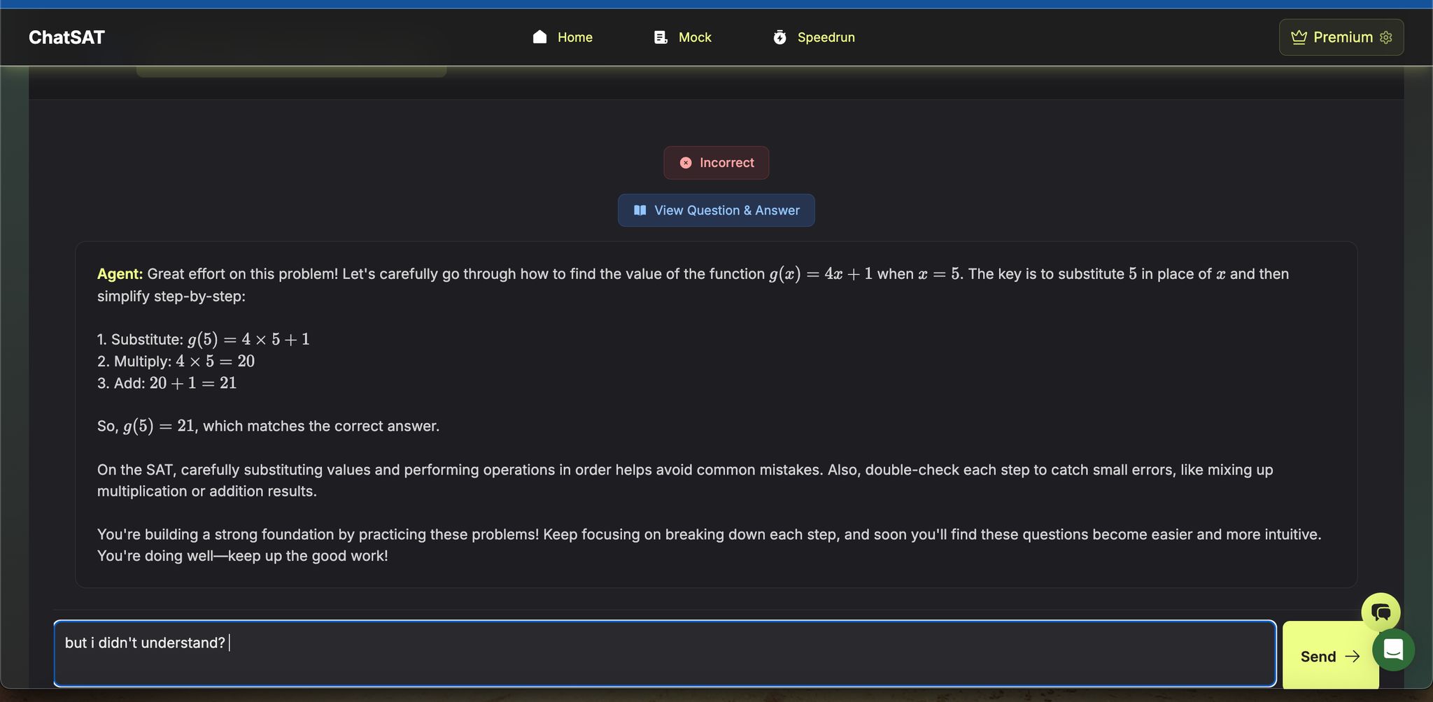 The platform’s feedback system tracks your performance in real time, monitors your mastery of topics, and offers tailored recommendations for your next study session. It doesn’t stop there - ChatSAT revisits challenging concepts until you’ve mastered them, ensuring no weaknesses are left unaddressed. This focused approach means every minute of your study time is spent boosting your score.